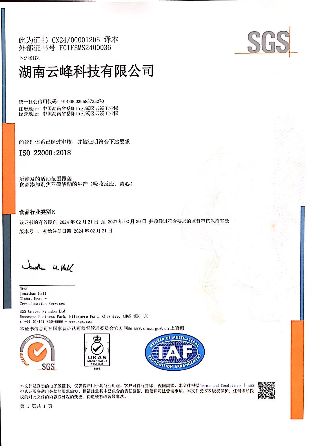 湖南云峰科技有限公司(以下簡稱云峰科技),是由長沙湘岳化工責任有限公司全額投資以生產焦亞硫酸鈉、亞硫酸鈉等亞硫酸鹽為主營業務的高科技企業,具有六十多年的生產歷史,同時也是焦亞硫酸鈉的國家標準制定參與者。在行業內具有很大的影響力。現有職工八十余人。具有優良的經營管理團隊和成熟的生產技術隊伍。由多位在化學、化工行業擁有豐富工作經驗的工程師及技術員團隊組建而成,致力于亞硫酸鹽產品的研發、生產和銷售。2020年公司對生產設備、安環設施及工業技術等進行了大規模的升級改造,使焦亞硫酸鈉和亞硫酸鈉的生產工藝更加先進,技術更成熟,產品質量更優良。無論在生產工藝、設備、產品質量、清潔生產、節能環保和員工素質方面,均處于行業領先地位。公司的主導產品“云峰”牌焦亞硫酸鈉,歷史悠久,深受國內外客戶信賴,產品遠銷東南亞、歐美、非洲、南美洲等20多個國家和地區,產品供不應求。